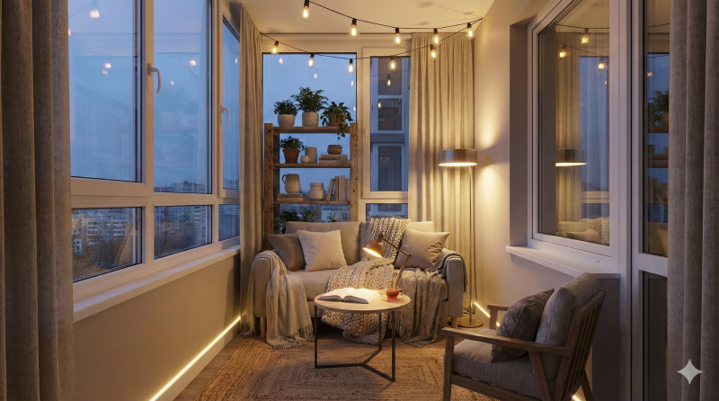 Освещение балкона и лоджии: расширение жилого пространства