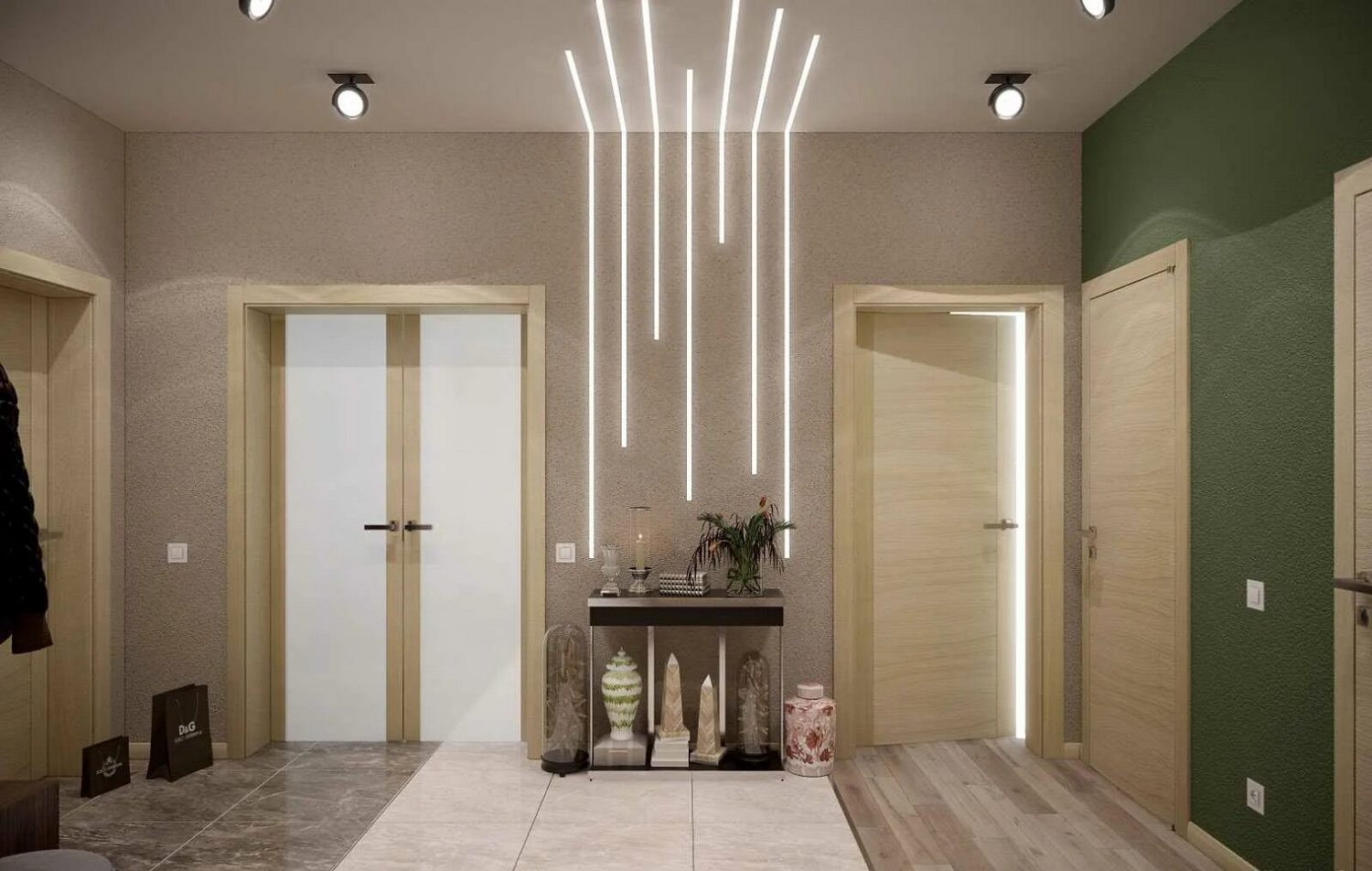 Свет — инструмент перспективы. Правильная подсветка делает узкую прихожую шире, а низкий потолок — выше.