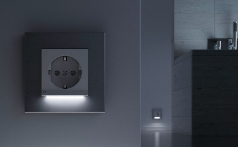 - Быстрое обнаружение выключателя в темноте — меньше травм и споткновений;
