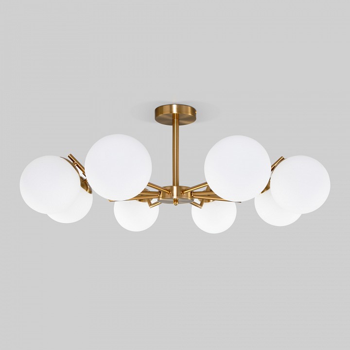 Корпус из прочной рамы в цвете латунь прекрасно сочетается с элегантными стеклянными плафонами. Нежные матовые поверхности плафонов создают атмосферу уюта и тепла, обеспечивая мягкое и равномерное освещение.
