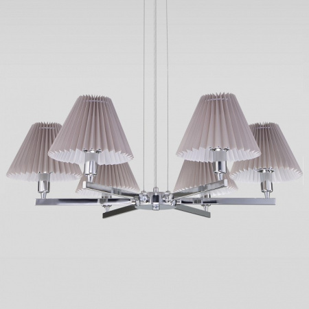 Люстра выполнена в хромированном цвете, который отлично отражает свет и создает впечатление легкости. Серые абажуры из качественного материала придают изделию мягкость и неповторимый шарм. Такой цветовой диапазон позволит гармонично вписать люстру в различные интерьеры — от классического до современного.