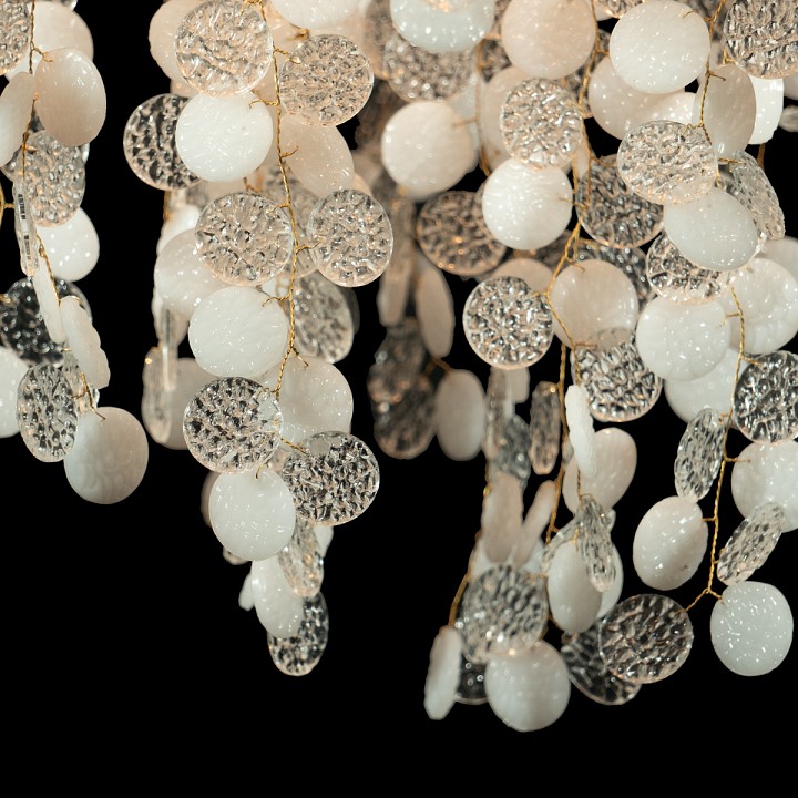 Люстра выполнена из качественных материалов, что гарантирует долговечность и надежность. Металлическая основа в черном и золотом цветах создает эффектный контраст и делает освещение особенно привлекательным. Элегантные линии и формы придают изделию воздушность и легкость, а использование натуралных материалов создает атмосферу тепла и уюта.