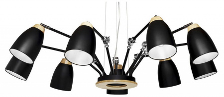 Люстра выполнена из высококачественных материалов, что обеспечивает долговечность и надежность. Девять источников света создают мягкое и равномерное освещение, подчеркивающее особенности вашего интерьера. Черная металлическая конструкция в сочетании с открытыми абажурами придает изделию оригинальный и выразительный вид.