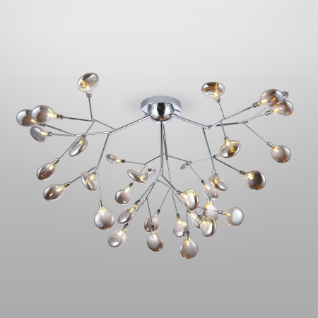 Эта люстра выполнена в хромированном цвете, который легко гармонирует с различными палитрами, добавляя блеска и элегантности. Дымчатые стеклянные элементы привносят нотку загадки и стиля, создавая мягкое и уютное освещение, которое наполняет помещение теплом и комфортом.