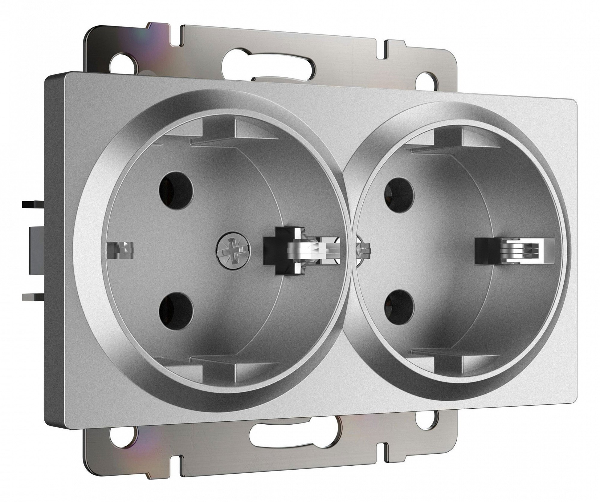 Розетка двойная с заземлением, без рамки Werkel серебряный матовый W1172065