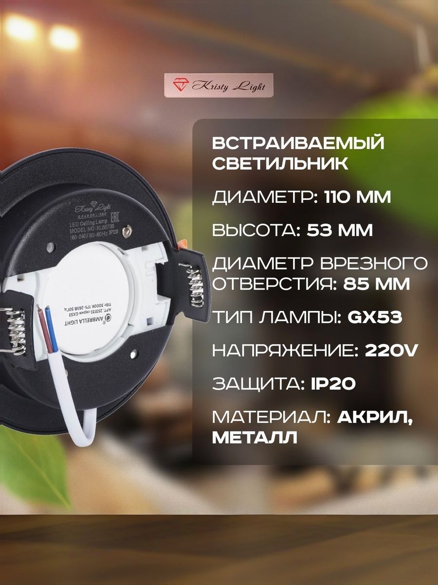Потолочный встраиваемый светильник Kristy Light KL5573 GX53 – это идеальное решение для создания стильного освещения в вашем интерьере. С его помощью можно не только осветить пространство, но и подчеркнуть индивидуальность стиля. Этот точечный светильник с аккуратным и современным дизайном прекрасно впишется в различные виды помещений, начиная от жилых пространств и заканчивая коммерческими площадями.