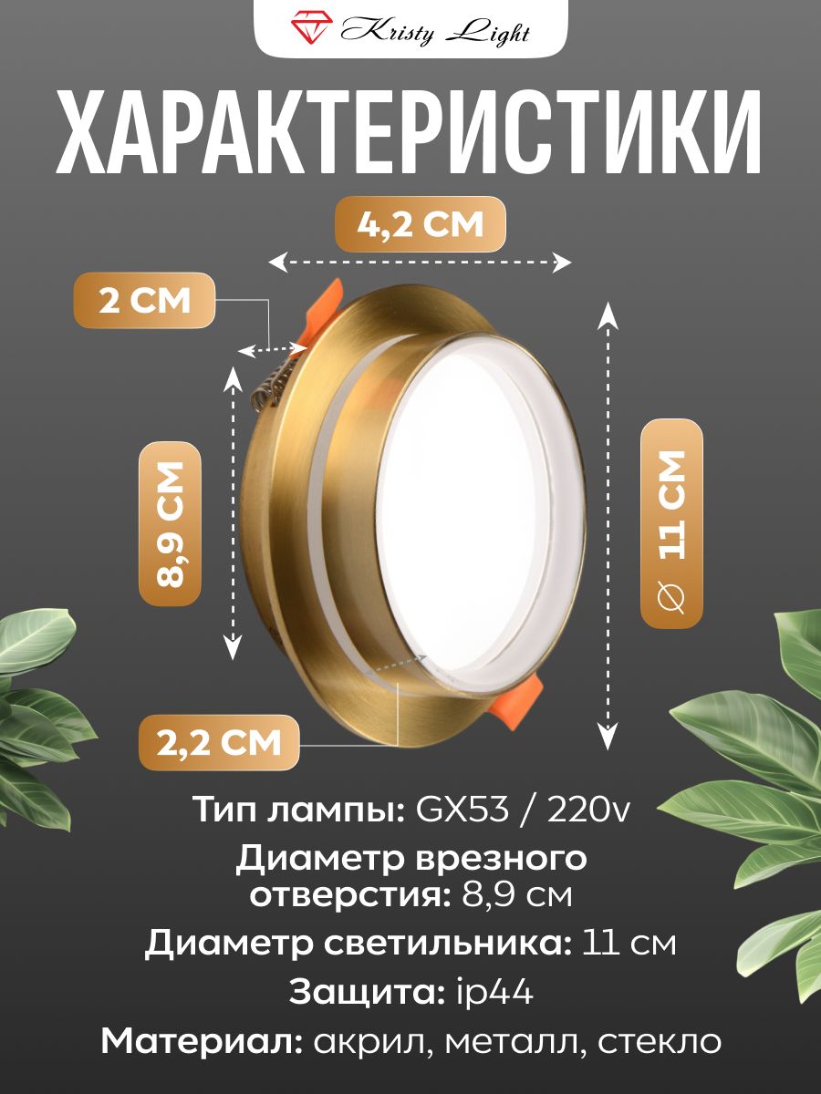 Элегантный встраиваемый светильник в латунном цвете с защитой IP44, идеально подходит для установки в помещениях, где требуется дополнительная защита от влаги.Преимущества:Материал: Корпус из алюминия гарантирует долговечность, а защитное стекло в нижней части светильника защищает его от попадания воды.Дизайн: Декоративный обод из акрила создает эффект парения и рассеивания света, добавляя атмосферности в любое пространство.Универсальность: Подходит для установки на потолок из ГЛК и натяжные потолки.Есть место для наружной вклейки термокольца!!!